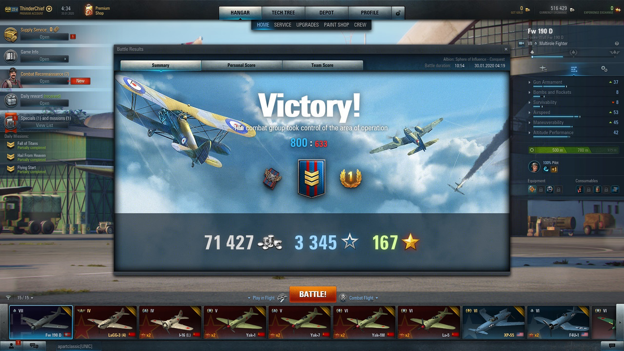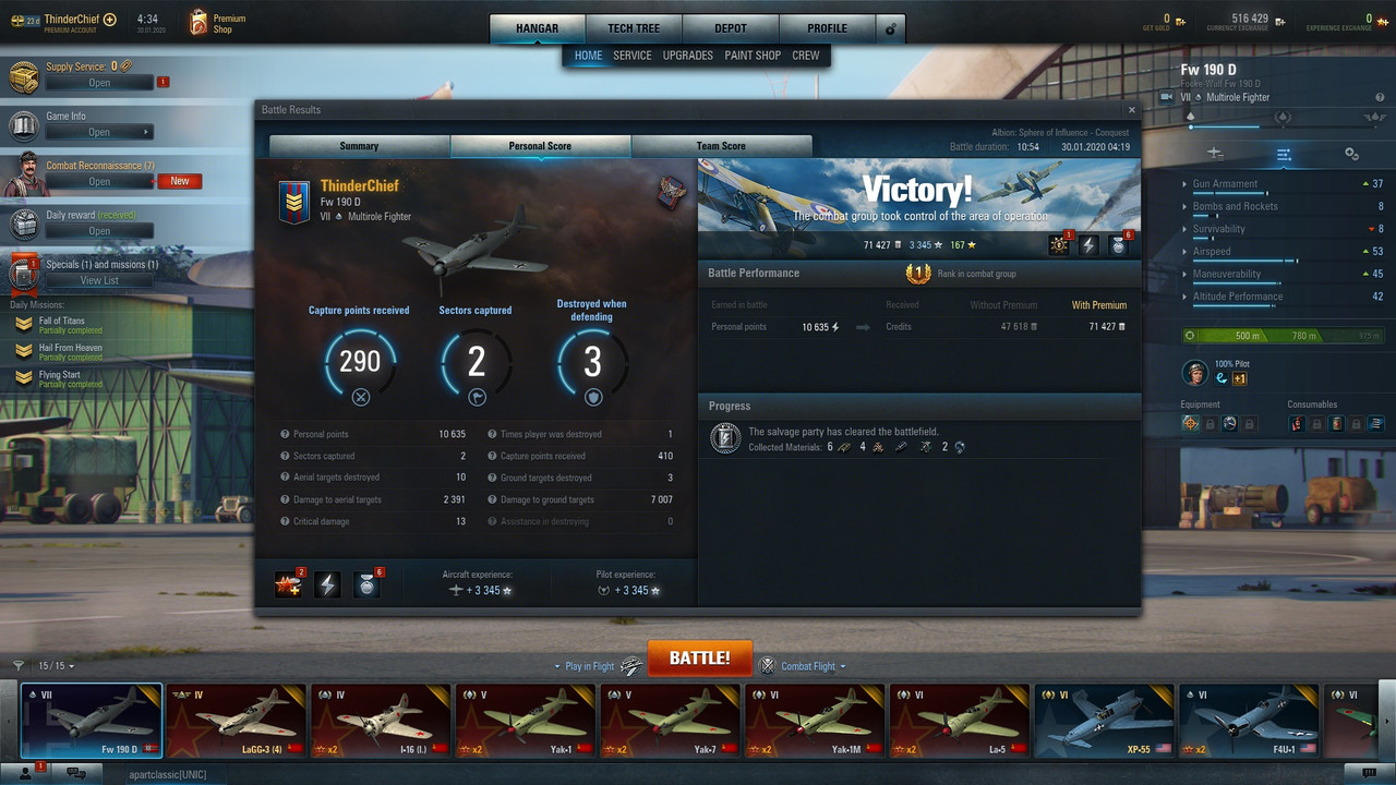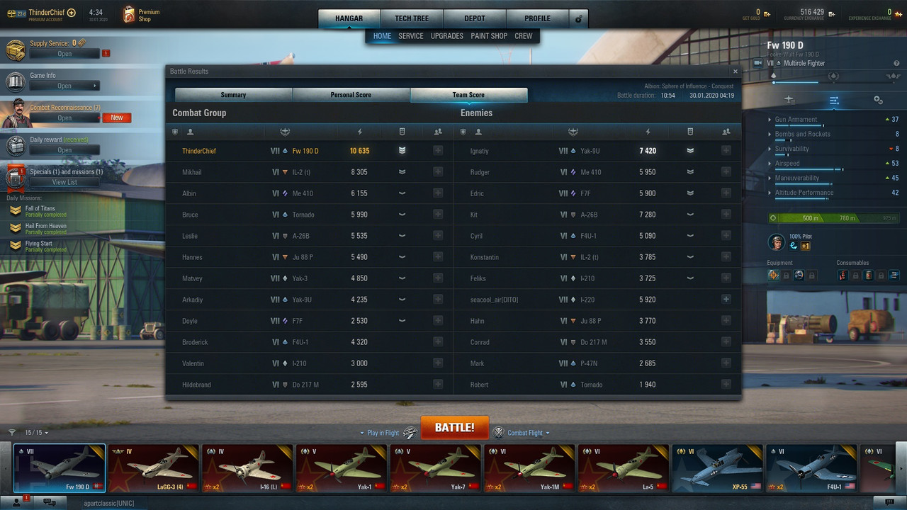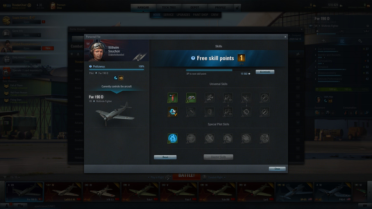 This only game gave me enough points to grind the fuselage, now I'm going to work at the second stage of the improvement, pilot skills and Specialist configuration, it's going to take time and a lot of playing but I believe the aircraft potential is worth it.